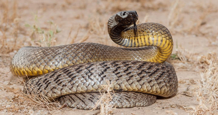 মরুভূমির মাঝখানে (কুইন্সল্যান্ড-দক্ষিণ অস্ট্রেলিয়ার চ্যানেল কান্ট্রি) বাস করা নিভৃতচারী এ সাপকে “ফিয়ার্স স্নেক”ও বলে। এর এলডি৫০ (এস.সি.) মাত্র ০.০২৫ মি.গ্র./কেজি। বর্তমান পর্যন্ত স্থলভাগের সবচেয়ে বিষধর সাপ। গড় লম্বা ১.৮ মিটার, গা বাদামি-হলুদ; শীতকালে গা গাঢ় হয় উষ্ণতা ধরে রাখতে। নিশাচর ইঁদুর-খেকো; মানুষ দেখে পালিয়ে যায়, তবে কোণে ঠেকলে একাধিকবার ছোবল দিতে পারে।